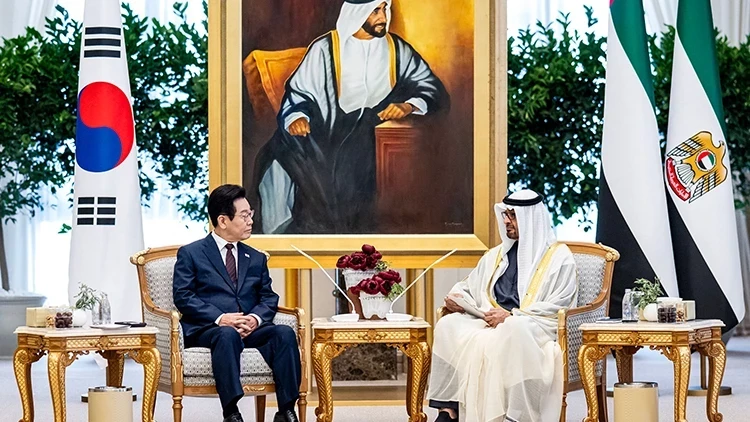AzerVoice xəbər verir ki, Cənubi Koreya Prezidenti Li Çje Myon və BƏƏ Prezidenti Məhəmməd bin Zayed Əl Nahyan Abu Dabidə görüşüblər.