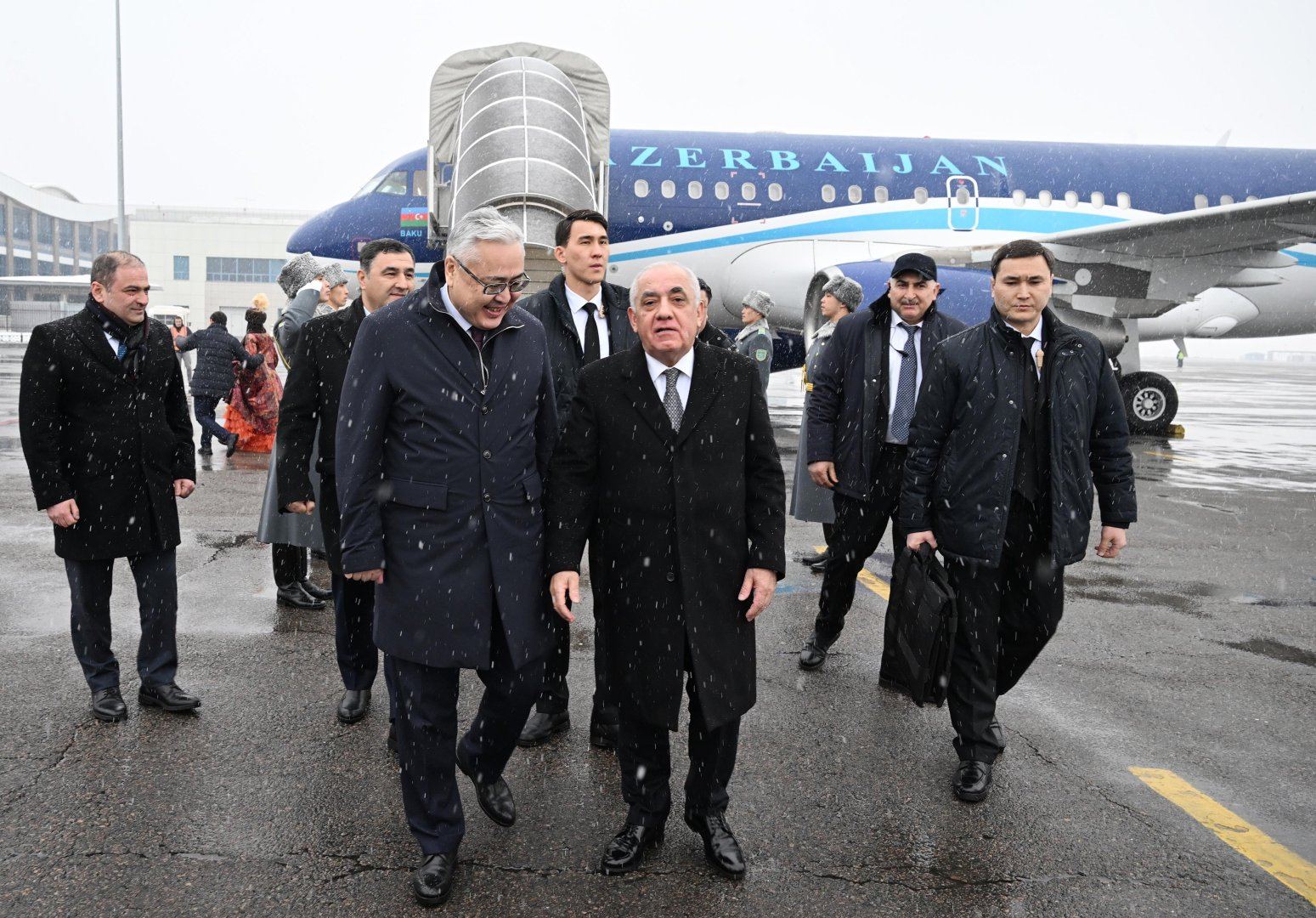 AzerVoice xəbər verir ki, Almatı Beynəlxalq Hava Limanında Ə.Əsədovu Qazaxıstan Respublikası Baş nazirinin müavini - hökumət aparatının rəhbəri Qalımjan Koyşıbayev və digər rəsmi şəxslər qarşılayıblar.
