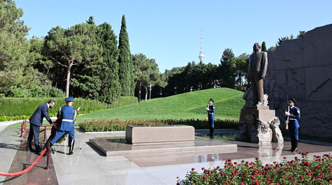 AzerVoice xəbər verir ki, Əhməd Əl Şaraa xalqımızın Ümummilli Lideri, müasir müstəqil Azərbaycan dövlətinin memarı və qurucusu Heydər Əliyevin xatirəsini ehtiramla yad edib, məzarı önünə əklil qoyub.