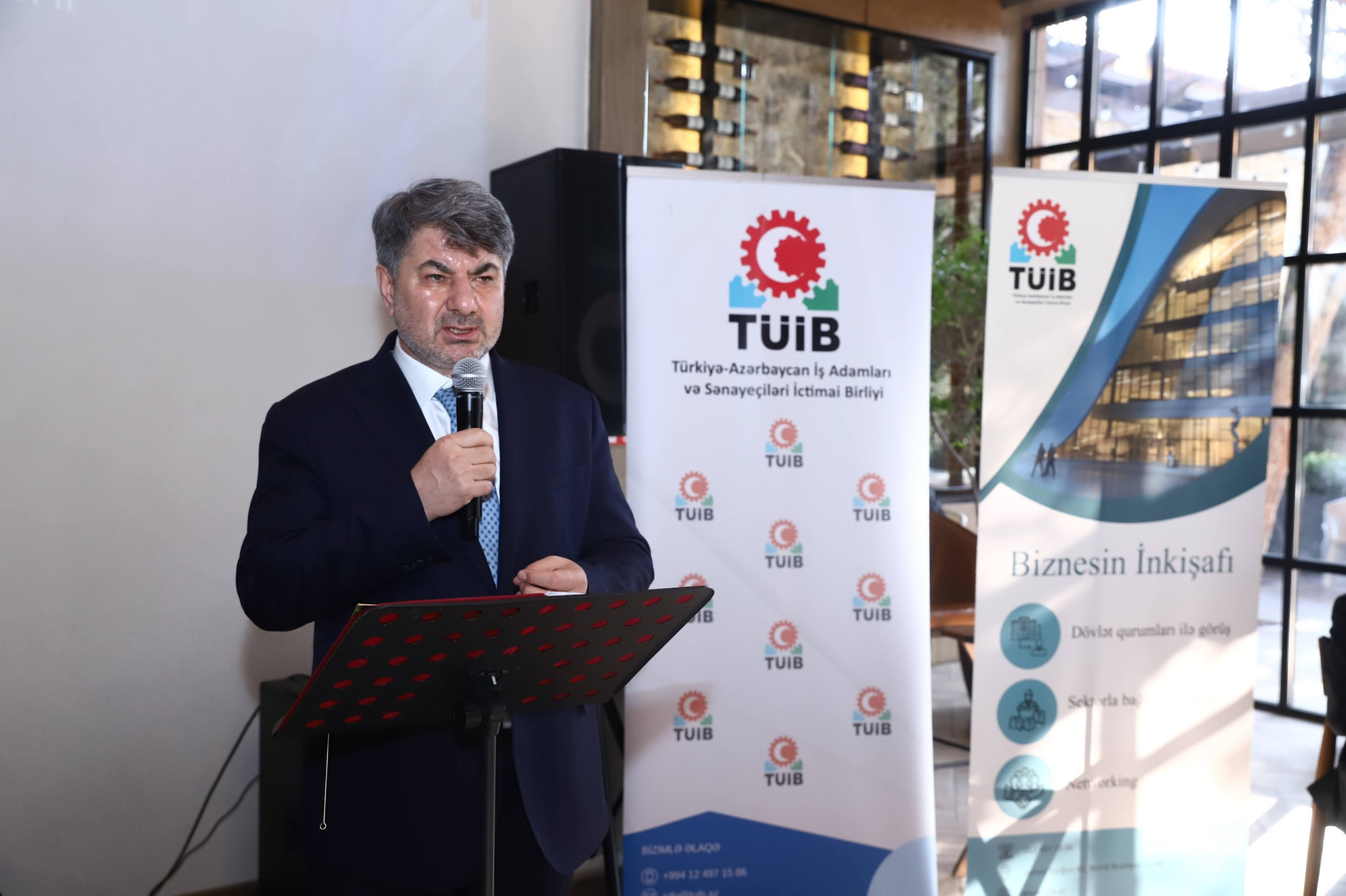 TÜİB-in İdarə Heyətinin sədri Hüseyin Büyükfırat çıxışında Türkiyə–Azərbaycan iqtisadi əlaqələrinin inkişaf perspektivlərinə toxunaraq, Birliyin iş adamları arasında əməkdaşlığın gücləndirilməsi, yeni biznes imkanlarının yaradılması və iki ölkə arasında iqtisadi inteqrasiyanın dərinləşdirilməsi istiqamətində fəaliyyətlərini davam etdirdiyini qeyd edib.