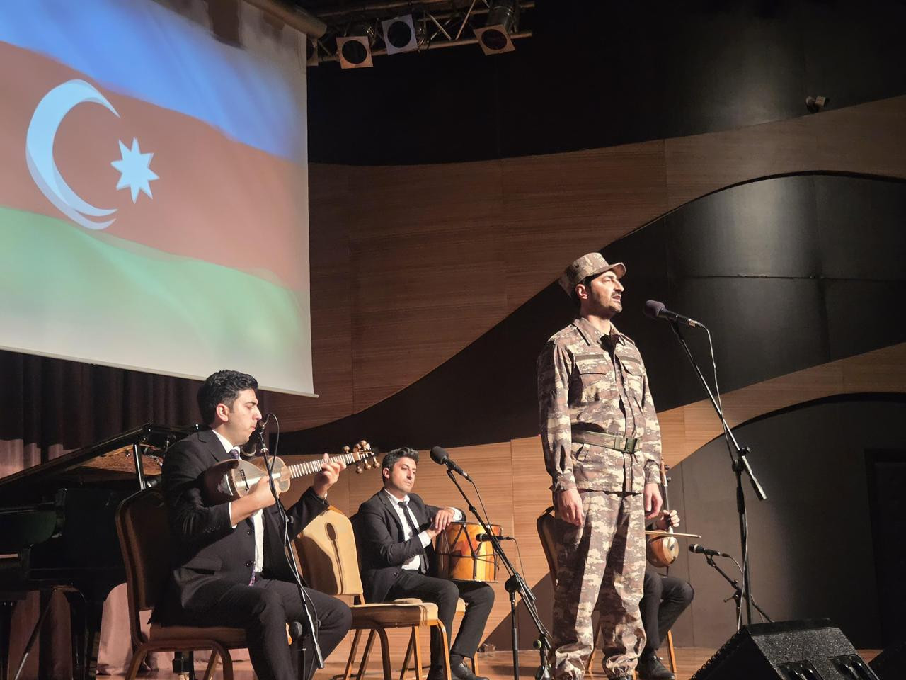 Proqram çərçivəsində Əməkdar artist Bəyimxanım Vəliyeva “Xudayar təsnifi”ni, gənc müğənni Xasay Şıxıyev “Ey vətən” mahnısını, tanınmış xanəndə Ayşən Mehdiyeva isə “Qarabağ” şərqisini ifa ediblər. Ramiz Qusarçaylının “Azərbaycan bayrağı” şeirini isə aktyor Tural Əhməd səsləndirib. Həmçinin 3 nömrəli Uşaq-Gənclər İnkişaf Mərkəzinin rəqs qrupunun çıxışı nümayiş olunub.