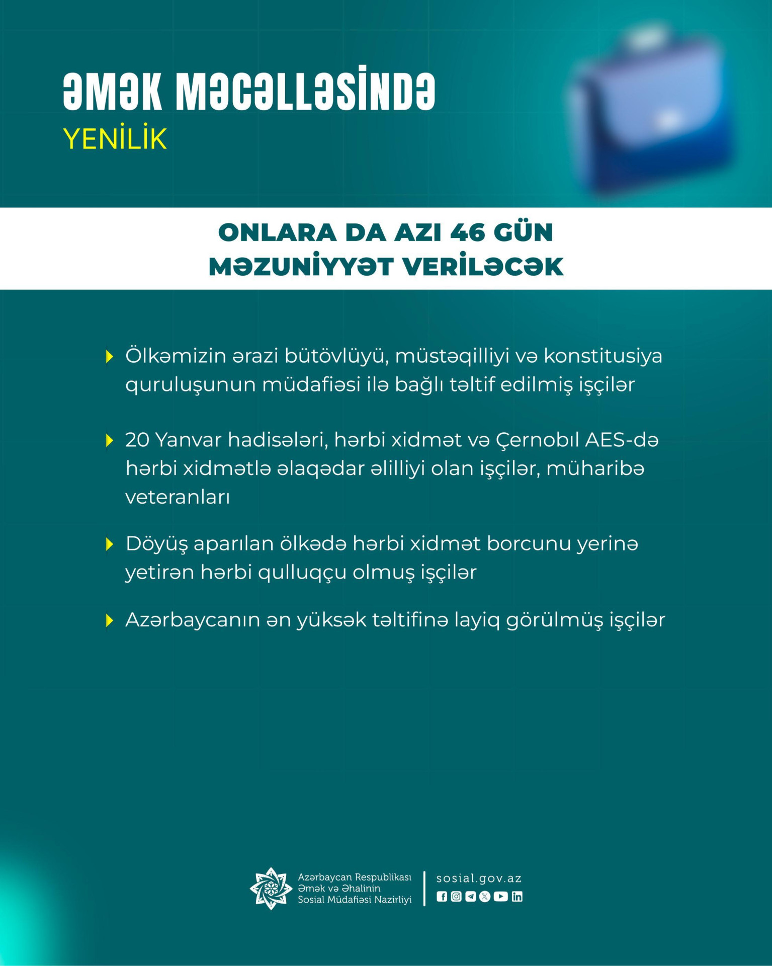 Məzuniyyət və sosial təminatlarda yeniliklər