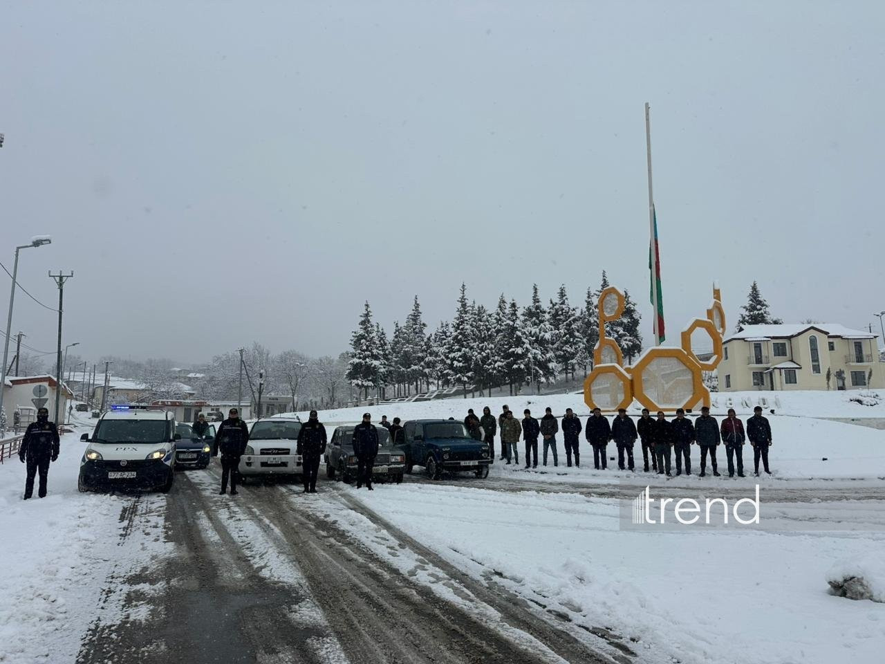 Şəhərdə nəqliyyatın və piyadaların hərəkəti dayandırılıb. Avtomobillərin siqnal səsi ilə şəhidlərimiz anılıb. Bayraqlar yarıya qədər endirilib.