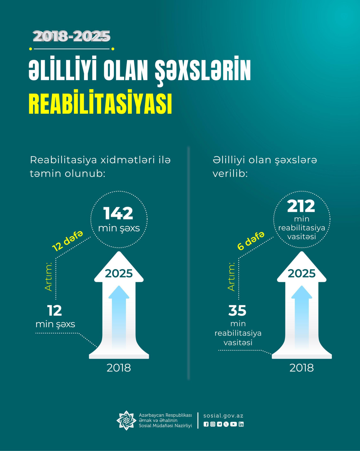 2018-2025-ci illərdə reabilitasiya xidməti göstərilən əlilliyi olan şəxslərin illik sayı 12 dəfəyədək artaraq 142 minə çatıb.
