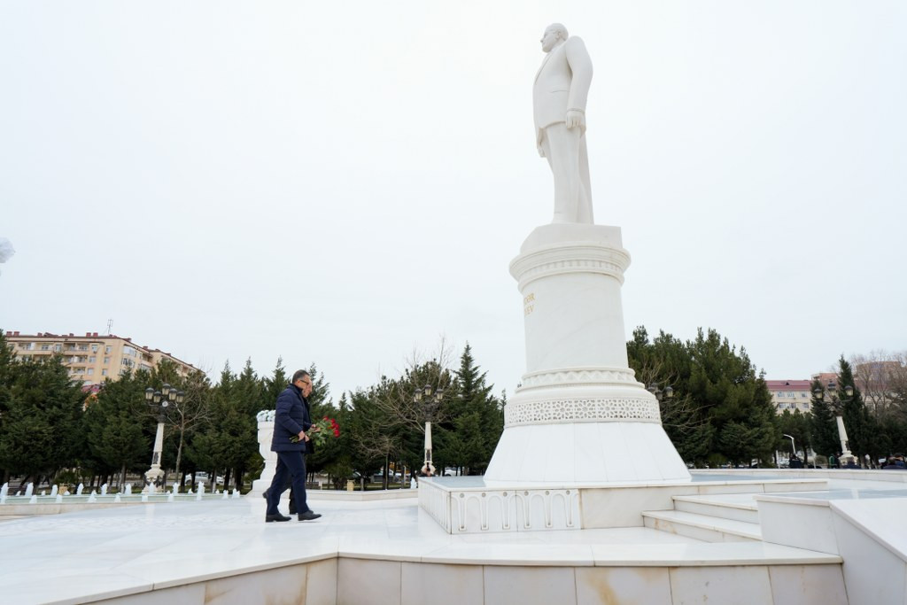 AzerVoice xəbər verir ki, qəbuldan öncə Ümummilli Lider Heydər Əliyevin şəhərin mərkəzində ucaldılan abidəsi ziyarət edilib, xatirəsi ehtiramla yad olunub.