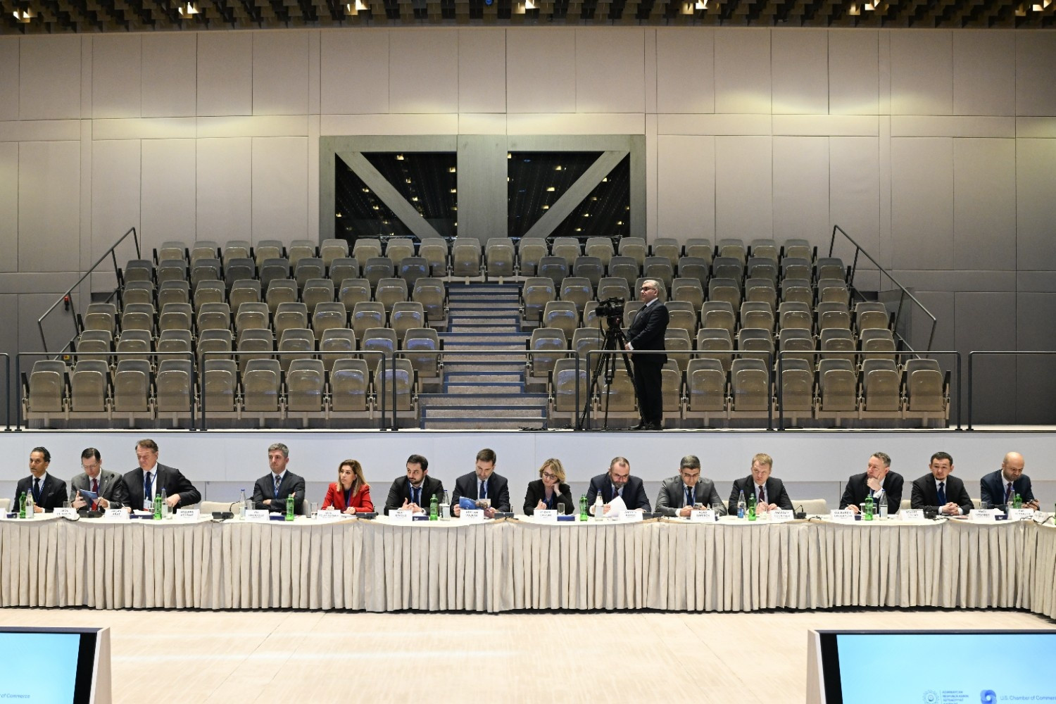 Dəyirmi masada dövlət başçılarının siyasi iradəsi sayəsində Azərbaycan - ABŞ münasibətlərinin strateji tərəfdaşlıq səviyyəsinə yüksəldiyi və iqtisadi əməkdaşlığın şaxələndirilməsi üçün geniş imkanların yarandığı vurğulanıb. Ölkəmizdə makroiqtisadi sabitlik və davamlı inkişaf prinsipləri əsasında formalaşmış iqtisadi mühitin xarici sərmayədarlar üçün cəlbediciliyi qeyd edilib. Azərbaycanda iqtisadiyyatın şaxələndirilməsi və qeyri-neft-qaz sektorunun genişləndirilməsi istiqamətində görülən işlər, prioritet strateji təşəbbüslər barədə məlumat verilib. Ölkəmizin əlverişli nəqliyyat-logistika üstünlükləri qeyd edilib, yeni nəqliyyat bağlantıları sayəsində əməkdaşlıq üçün əlavə imkanların açılacağı vurğulanıb. Azərbaycanda sahibkarlar üçün təqdim edilən güzəşt və stimullar, ölkəmizdə rəqəmsallaşma, investisiya axınlarının genişləndirilməsi, sahibkarlığın inkişafı istiqamətində atılan addımlar nəzərə çatdırılıb.