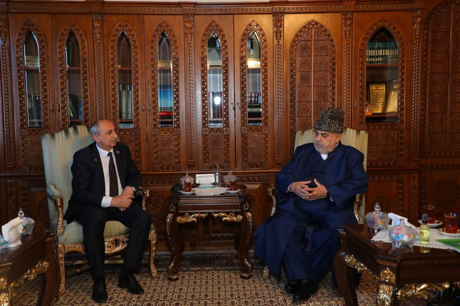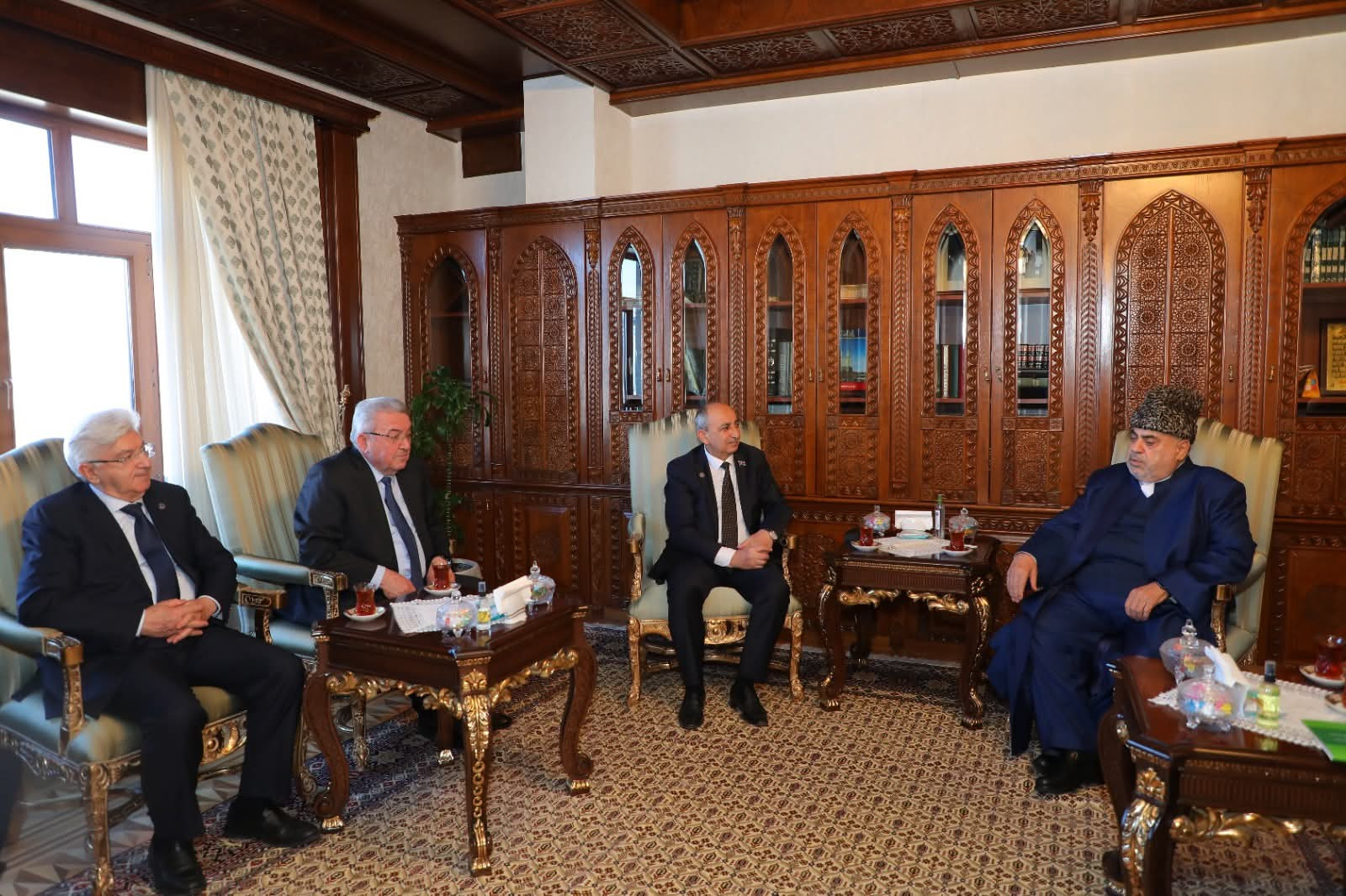Səmimi qarşılanma mərasimində qonaqları QMİ-nin sədri, şeyxülislam Allahşükür Paşazadə qarşılayıb.
