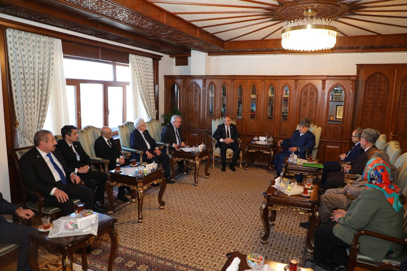 Söhbət zamanı qonaqlar ali din rəhbərinə təqdim olunub.